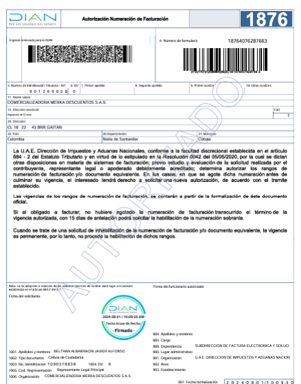 * Fecha - Vencimiento: Se debe indicar el rango de fechas para el cual esta vigente la resolución, la fecha de emisión esta en la DIAN igualmente la Vigencia con la cual se puede calcular la fecha final