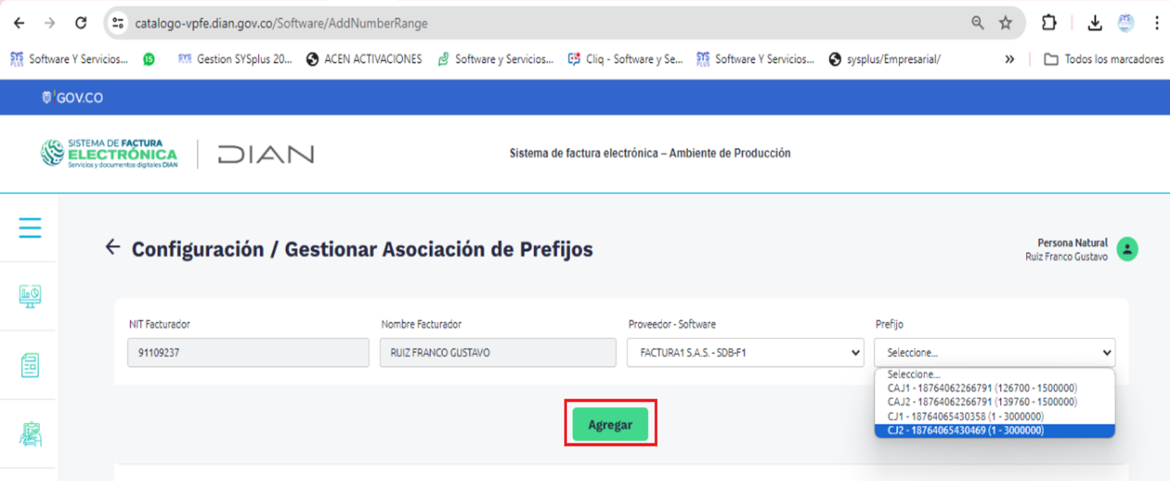 Una vez en el portal, Ingrese a la opción de Documentos electrónicos / Asociación de prefijos