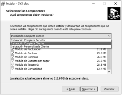 Sobre la siguiente ventana seleccione la opción "Instalación completa de cliente"