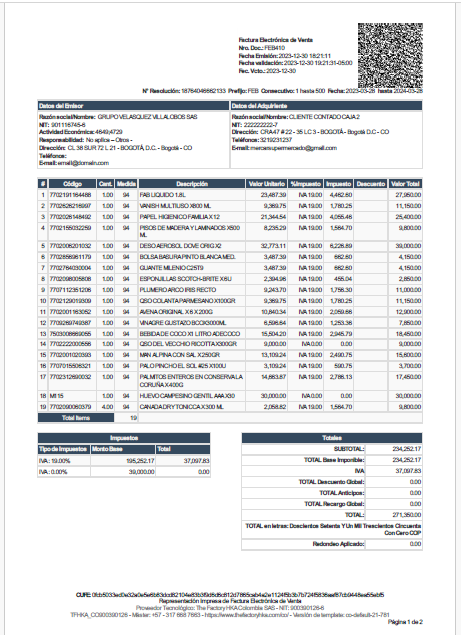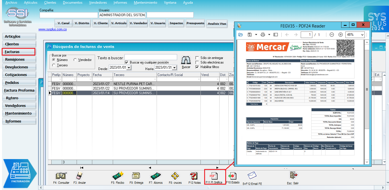 Con la integración de HKA FACTORY se tiene la opción de manejar la representación grafica estándar que es la que "pinta" directamente el proveedor tecnológico, este pdf se puede descargar desde el sistema SYSplus y/o desde el portal de Emisión de facturas de HKA.