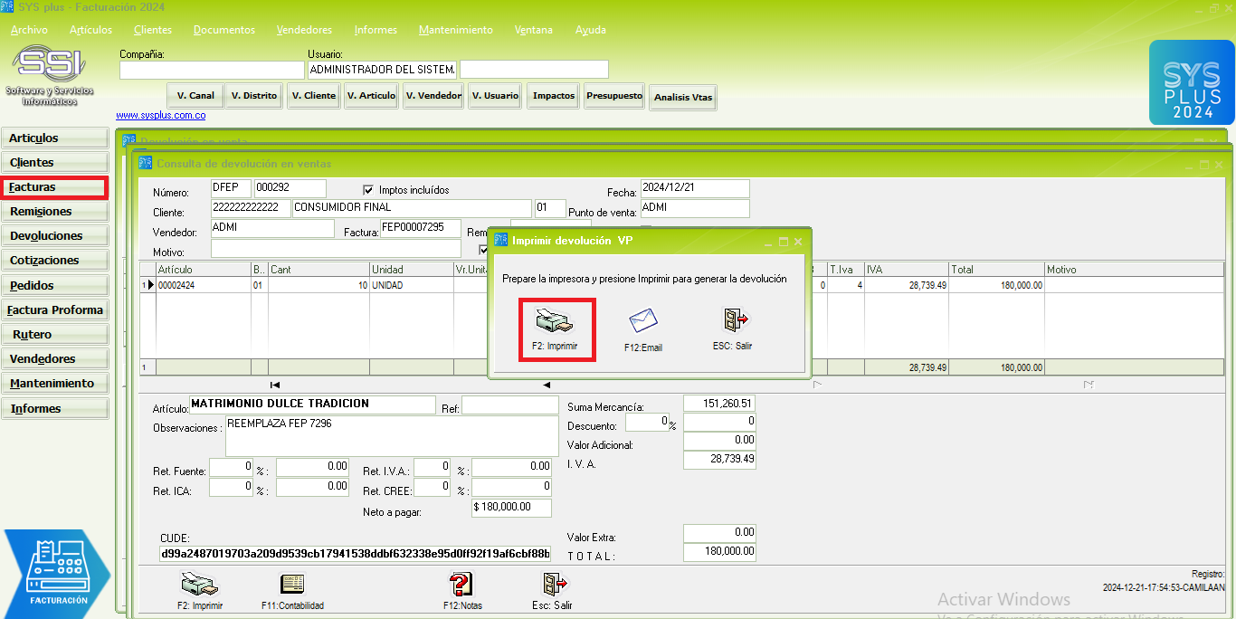 - Al encontrar el documento, se debe consultar por la opción F4 Consultar