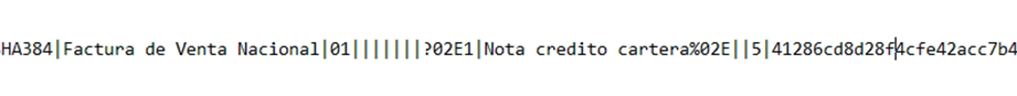 la información del envio de la nota crédito y en este caso en la cadena 02E1 se