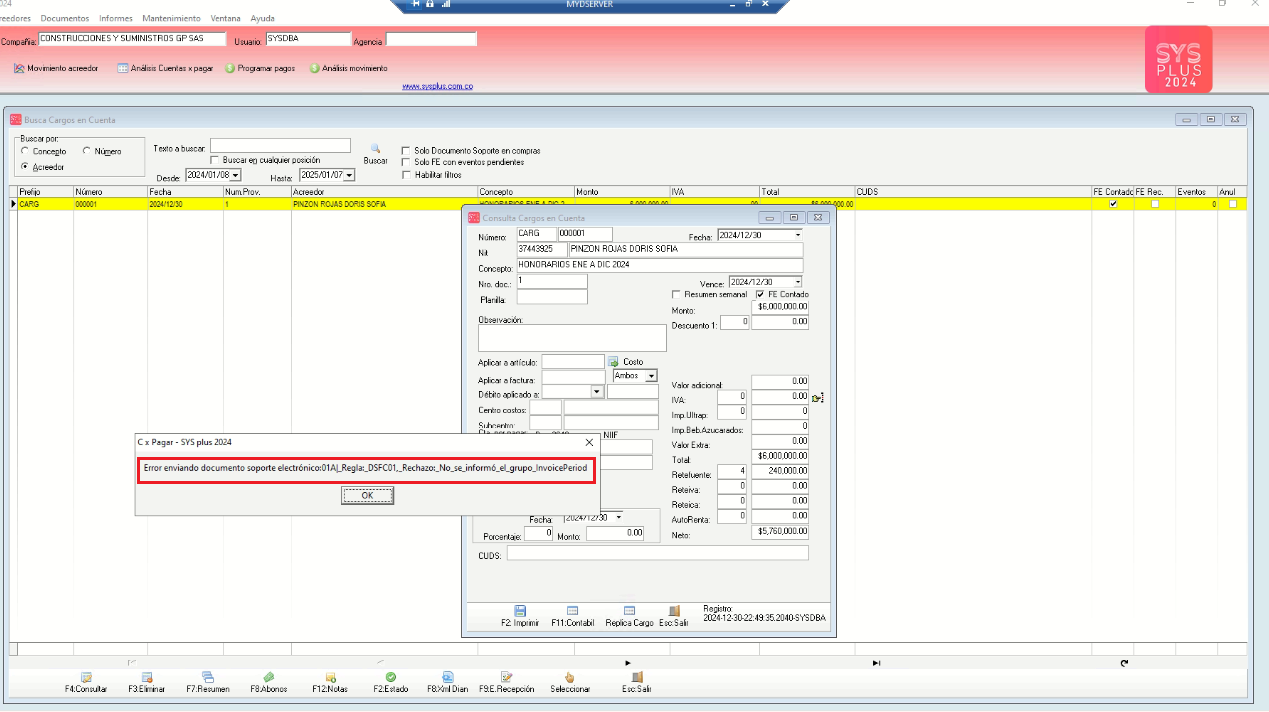 SYSplus: Regla de Rechazo DSFC01- Mensaje: No se informó el grupo InvoicePeriod Proveedor HKA