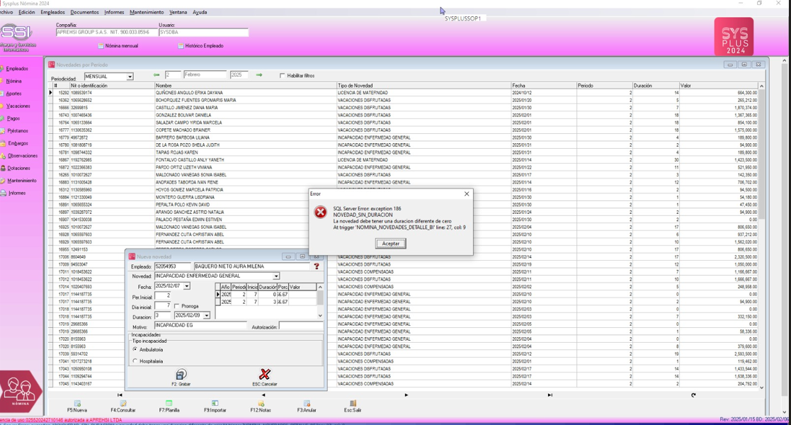 SYSplus: EMP Y ERP 2024 ERROR: AL REGISTRAR UNA INCAPACIDAD DE ENFERMEDAD GENERAL