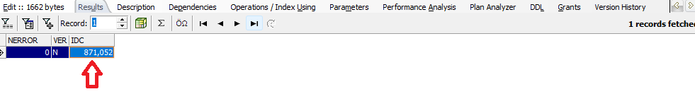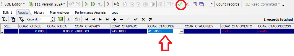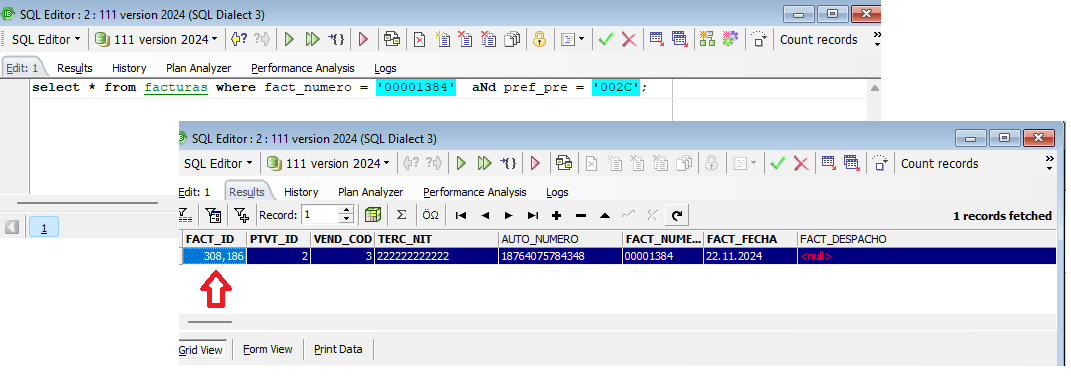 El procedimiento que se acaba de correr (CONTABIL_FACTURA), arroja como resultado el ID CONTABLE en el campo IDC, el cual se debe tener en cuenta para el siguiente paso. Se debe copiar el dato.