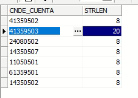 SELECT CNDE_CUENTA, CHAR_LENGTH(CNDE_CUENTA) FROM CONTABILIZACION_DET where CNTB_ID = XXXX