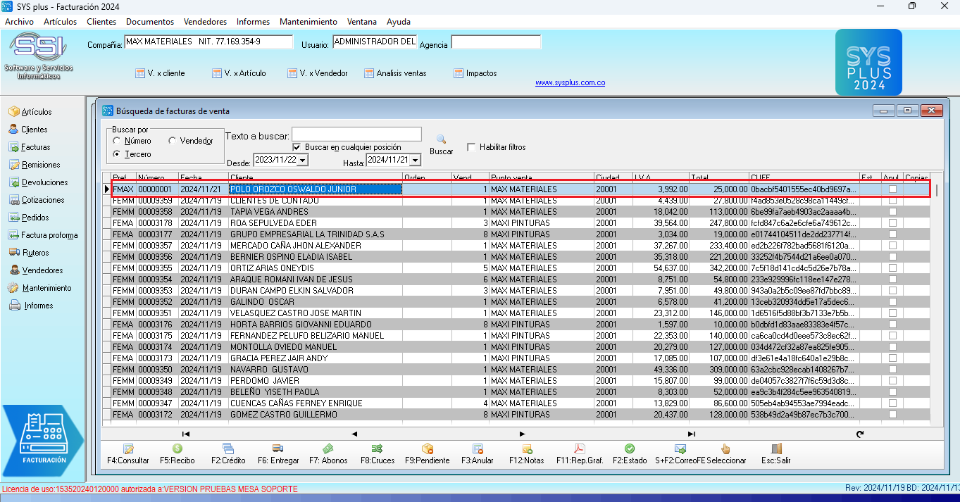 Luego de esto se procede hacer de nuevo el envió de la factura la cual viajara sin problema y generando correctamente su cufe.