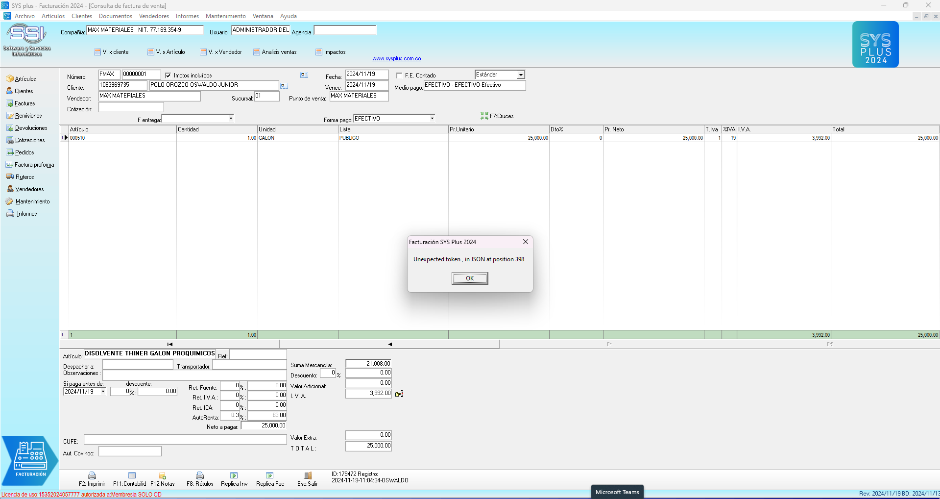 ERROR: UNEXPECTED TOKEN IN JSON AT POSITION XXX PROVEEDOR PLEMSI