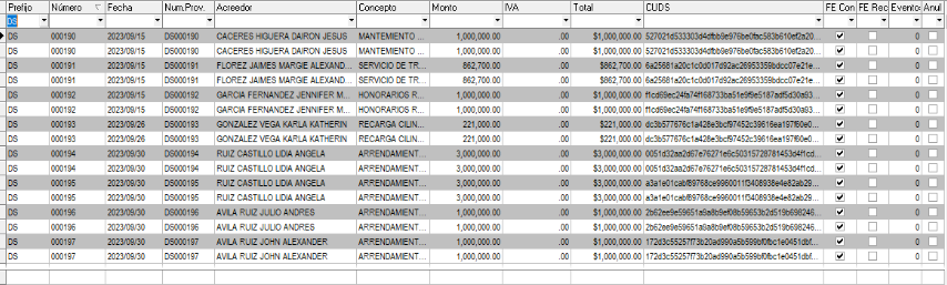 Error: En la búsqueda de cargos, se ven duplicados los cargos de documento soporte, al consultarlos deja consultar sin problema los dos registros.
