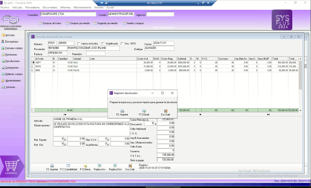 Solución: Cuando se realiza una devolucion o una descuento de documento soporte, el sistema valida la autorización relacionada al documento soporte asociado al descuento o devolucion realizada.