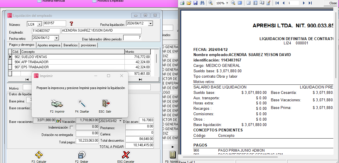 3. Al crear el prefijo y la interfaz se puede hacer la liquidación correctamente