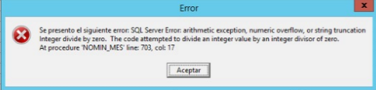 Error división por cero al calcular Nomina Electrónica en el procedimiento NOMIN_MES