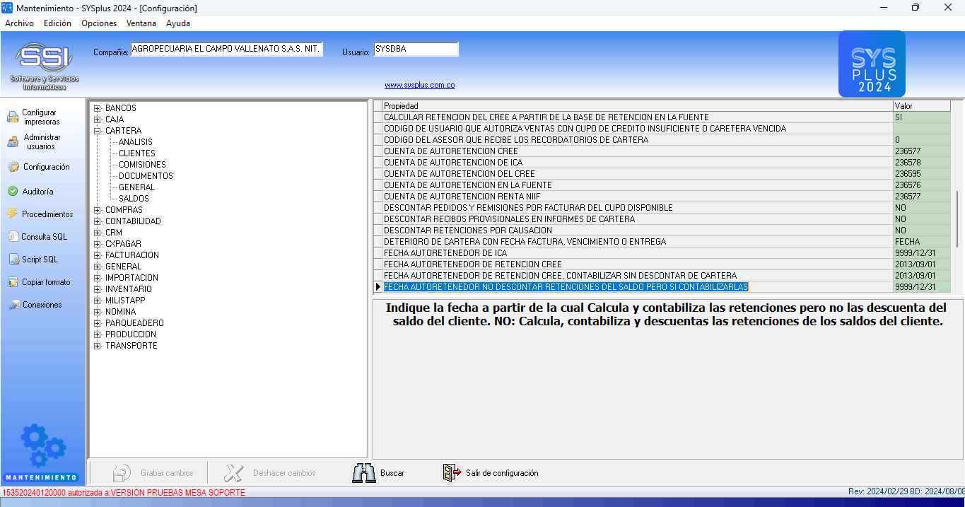 Se debe tener en cuenta que todos los parametros de FECHAS AUTORETENEDOR de los parametros de CARTERA/SALDOS no deben quedar vacios.