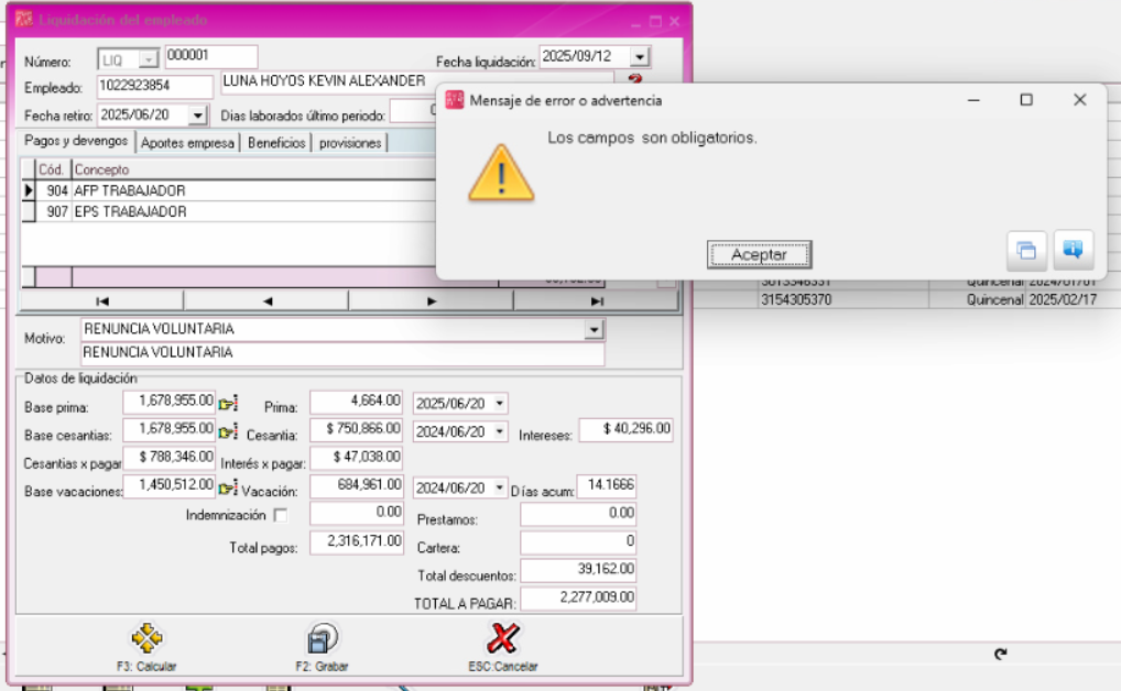 SYSplus Nomina: En la liquidación definitiva no aparece los valores en las prestaciones (Prima, Cesantías e Int. Cesantías)