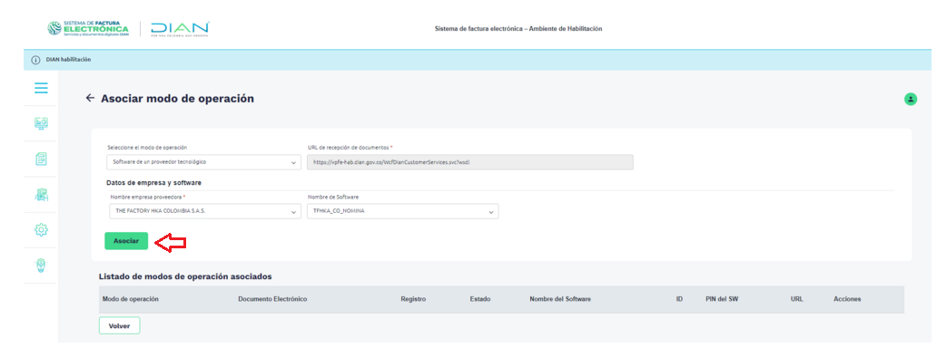 7.2.2. Nombre del sofware: Seleccionar del listado el correspondiente: Ejemplo: TFHKA_CO_NOMINA (Para el caso de HKA)