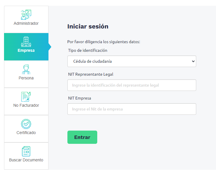 3. Al finalizar de diligenciar los datos y dar click en el botón verde "Entrar", la DIAN envia un correo electrónico con el token de ingreso, Tener en cuenta que el correo se envia al que este en el rut del Representante Legal