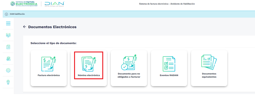 5. Seleccionamos la opción de "Nomina electrónica"