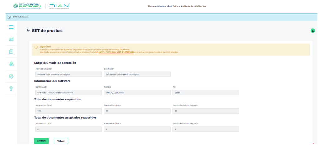 La Dian le genera el SetTest Id que es el identificador para poder realizar las transmisión de los documentos requeridos: 4 nominas individuales