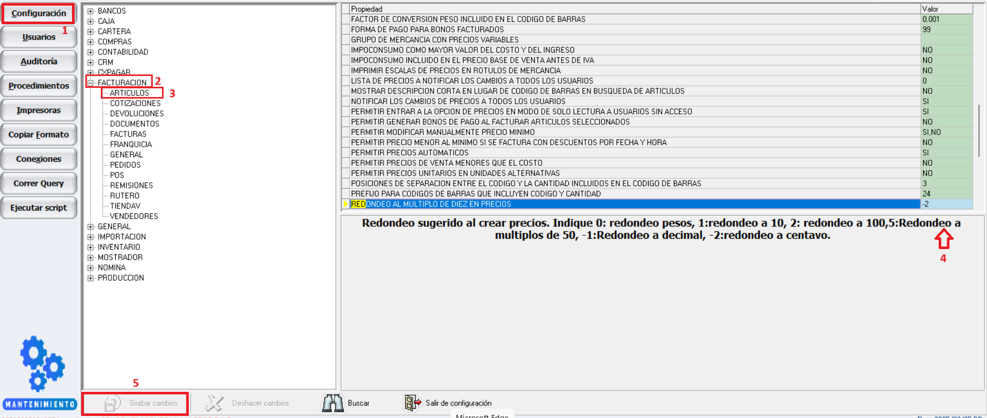 2.Para modificar el paramatro debe ingresar al modulo de Mantenimiento / Configuracion / Facturacion / Articiculos