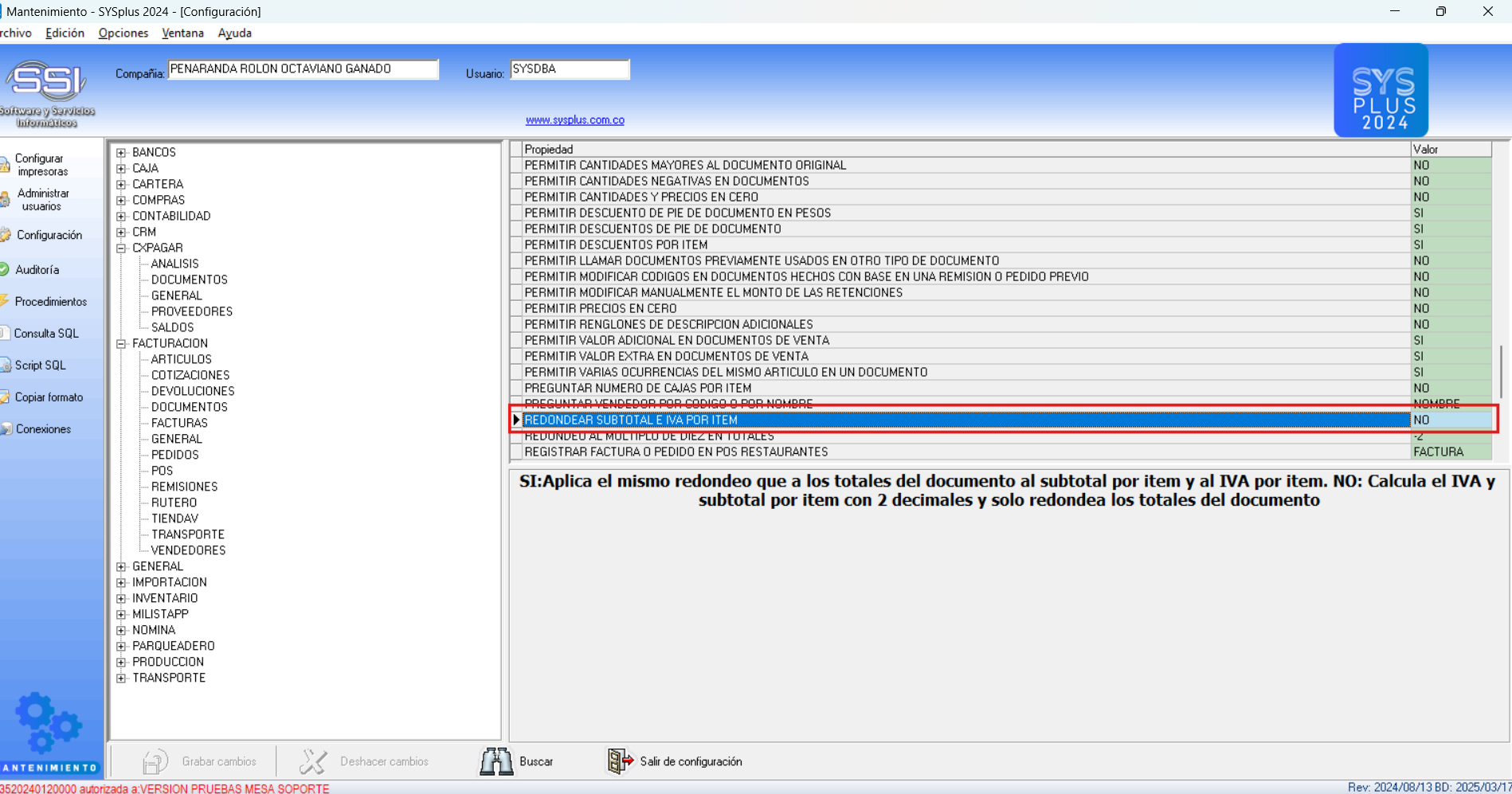 Solucion: Corregir el parámetro anterior y luego correr el procedimiento RECALCULA_IVA_FACTURAN con la ultima revisión para EMP2024 para el recalculo respectivo y posterior envio del documento electrónico.