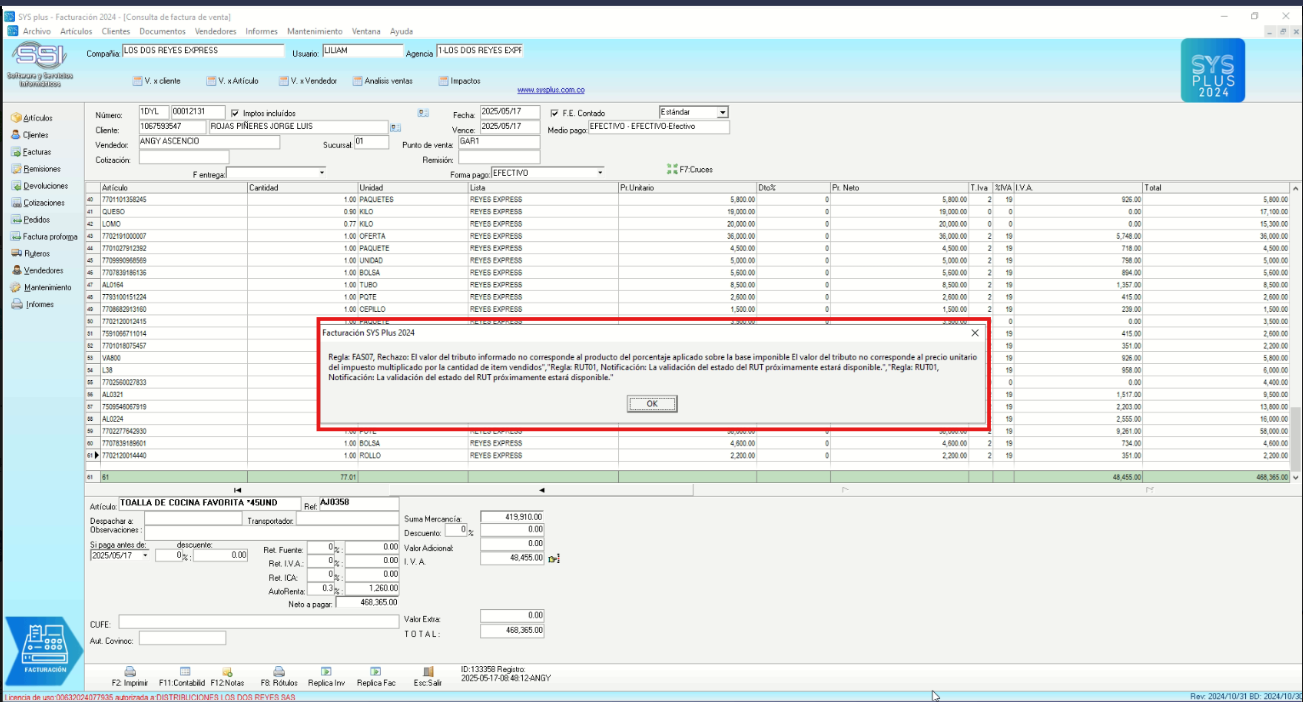 SYSplus EMP2024: Al enviar Factura Electrónica - Regla FAS07 - Rechazo