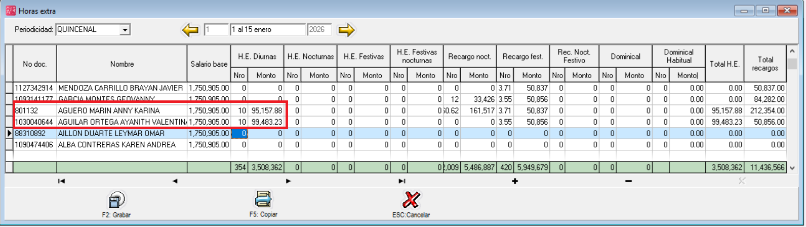 SYSplus-Nomina - Al registrar la novedad de horas extras, con dos empleados de mismo salario e igual cantidad de HOoras Extras, NO está arrojando los mismos valores