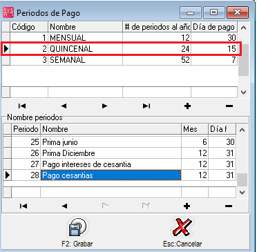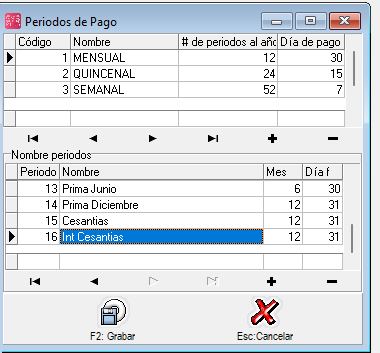 Tener en cuenta que también el sistema maneja periodos especiales para el pago de Prima Junio, Prima Diciembre, Cesantías e Intereses. Adicional el cliente puede crear periodos adicionales para el pago de dotaciones si lo requiere.