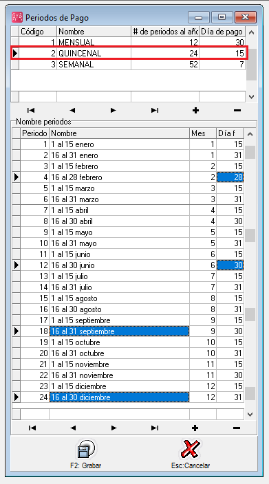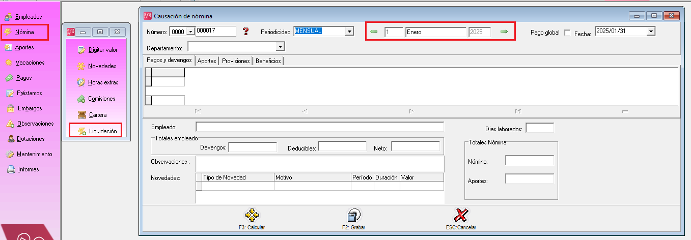 Garantizando que los periodos estén creados y configurados correctamente ya podrá registrar la nomina en el periodo correspondiente