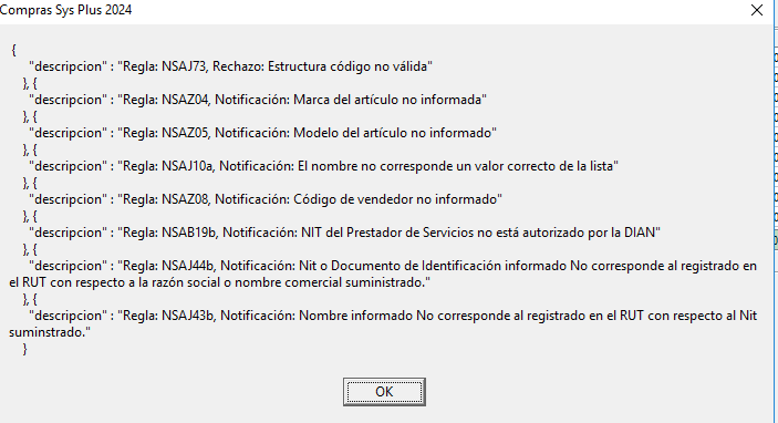 SYSplus: Regla: regla NSAJ73 Rechazo Estructura código no valida /Documento Soporte en adquisiciones efectuadas a sujetos no obligados a expedir factura de venta